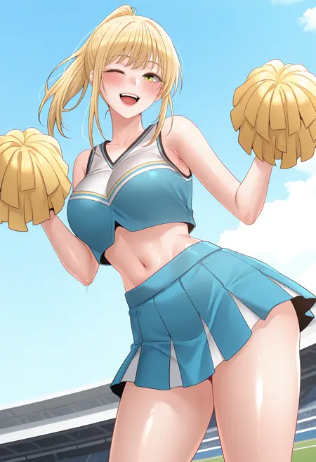 - 啦啦队队员, 无袖, 露脐上衣, 露腹, 超短裙, 双色露脐上衣, 蓝色裙子,