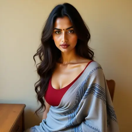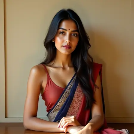 이 놀라운 모델은 풍부한 남인도 톤을 보여주며 그 아름다움으로 진정으로 매료시킵니다. 인도인의 놀라운 피부 다양성을 강조하도록 설계되었으며, 제가 이 생동감 있는 본질을 정말 잘 포착했다고 믿습니다.
