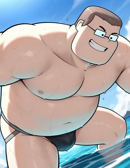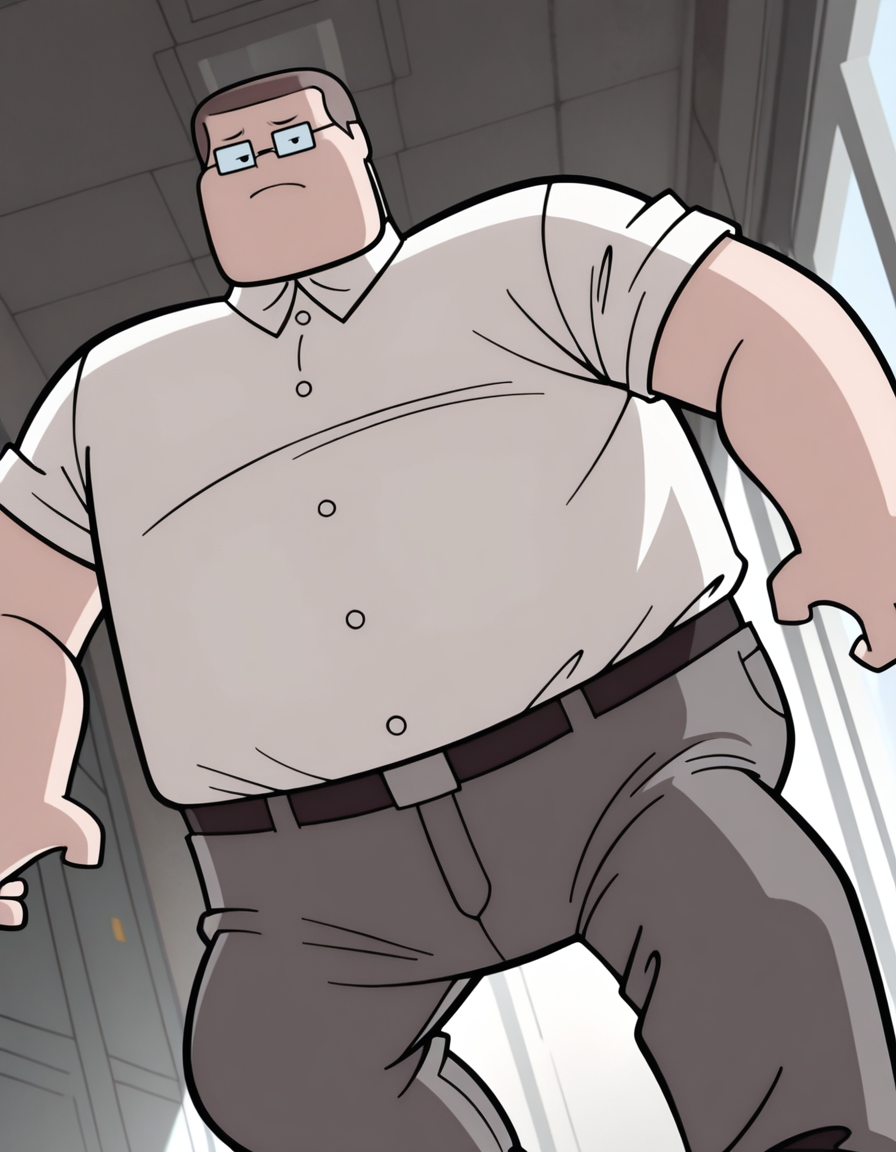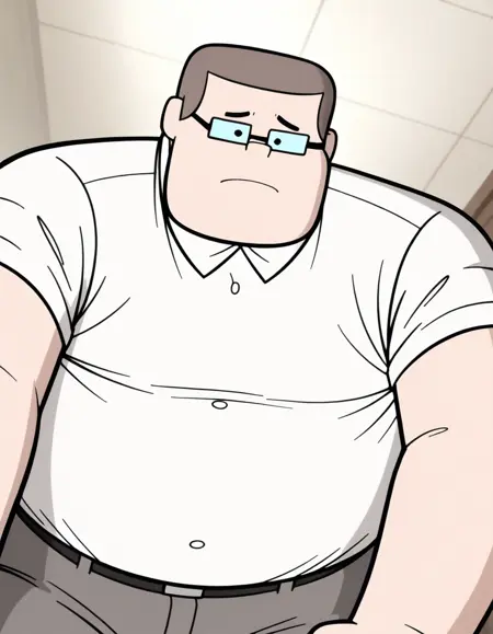 Octus-ARAI-IL, 1boy, male focus, brown hair, black eyes, glasses, fat