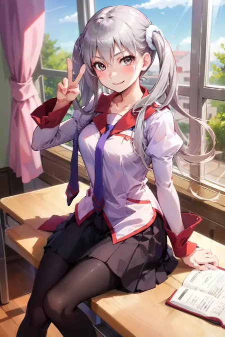 oikurasodachi, 灰色眼睛, 校服, naoetsu高中校服, 领带, 裙子, {蓬松袖子|朱丽叶袖子}, 黑色连裤袜