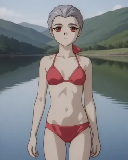 风格:长发,灰发,辫子,帽子,红色蝴蝶结,红眼睛,裙子,珠宝,