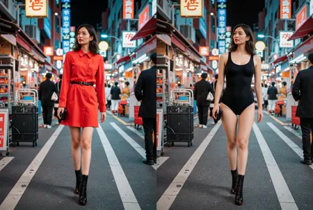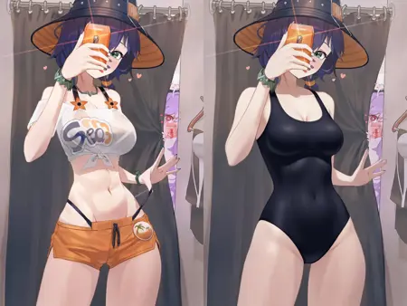 用途二:间接使用,例如先生成比基尼服装,再通过 Kontext 添加一张服装参考图,让角色穿上,可使角色身材比直接穿着更显突出(见示例图)