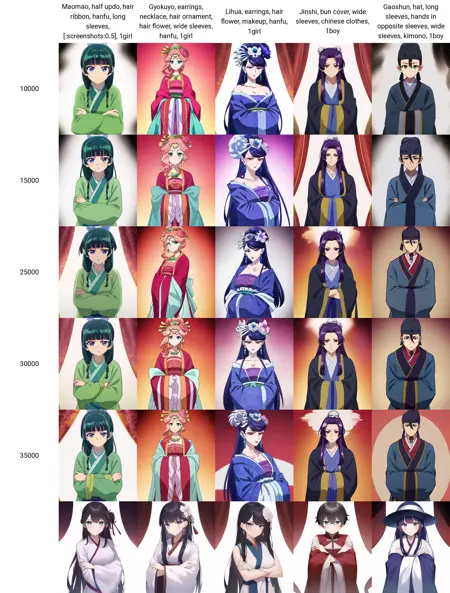어떤 캐릭터의 학습은 덜 성공적이었음이 밝혀졌습니다. 특히 Yinghua와 Ailan(아마 Guiyuan과 Hongniang도 포함)은 버전 1을 사용하는 것이 좋습니다. 그렇지 않으면 screenshots를 추가하면 신뢰도는 향상되지만 유연성은 떨어집니다. (실제로 일부 캐릭터에는 너무 많은 요소가 이에 흡수됩니다.)