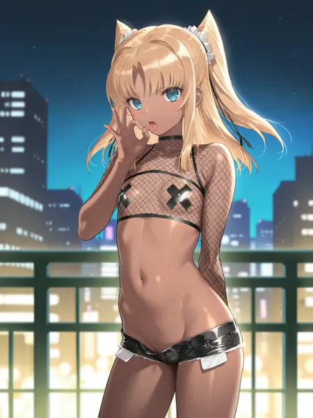 外观:futabalily,两鬓束起,平胸,深色皮肤,发带(有时深色皮肤需要更高的权重)