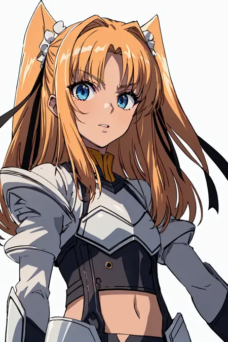 Apperance: ilfutabalily, blue eyes, blonde hair, long hair, two side up, dark-skinned female, hair ribbons