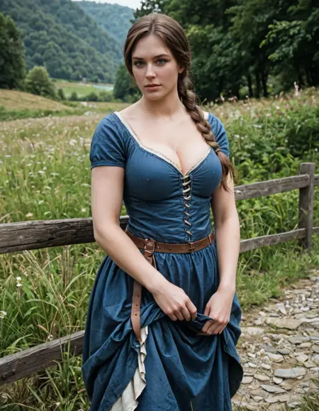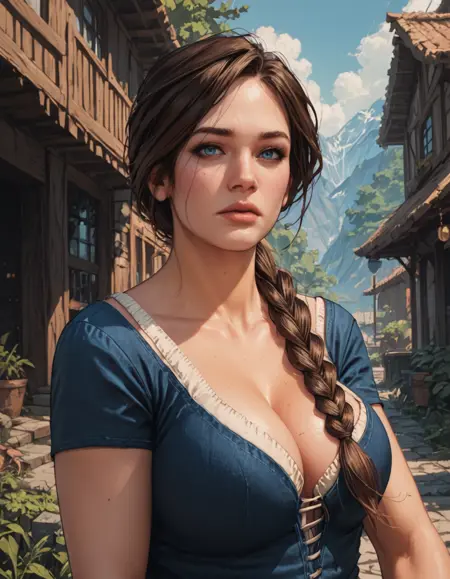 Main prompt : Kathkcd2,brown hair,ponytail,braid,blue eyes