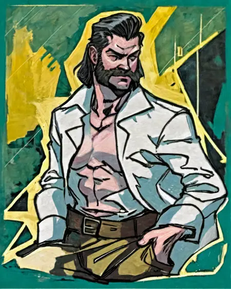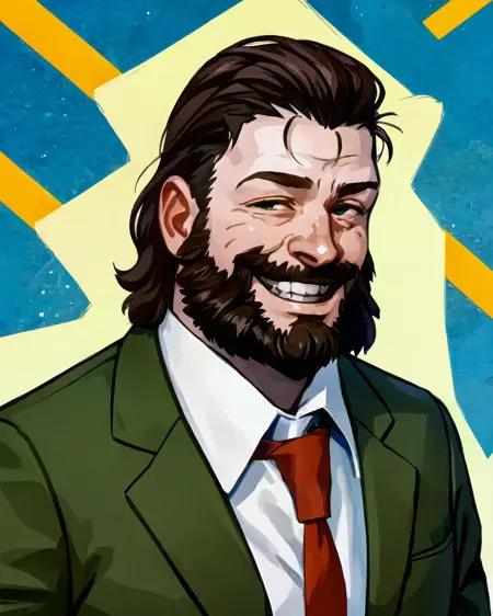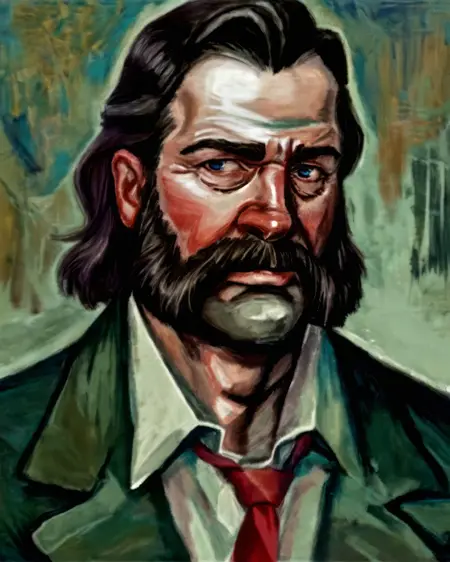 LoRAは、ゲーム『ディスコ・エリシウム』のキャラクター**ハリー・デュボア**の肖像を生成できます。
