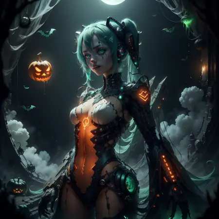 halloweentechを必ず使用してください。Trick or Treat ?scifiを追加または削除することで、テクノロジー要素の濃淡を調整できます。完成度を高めるには、以下の装飾語