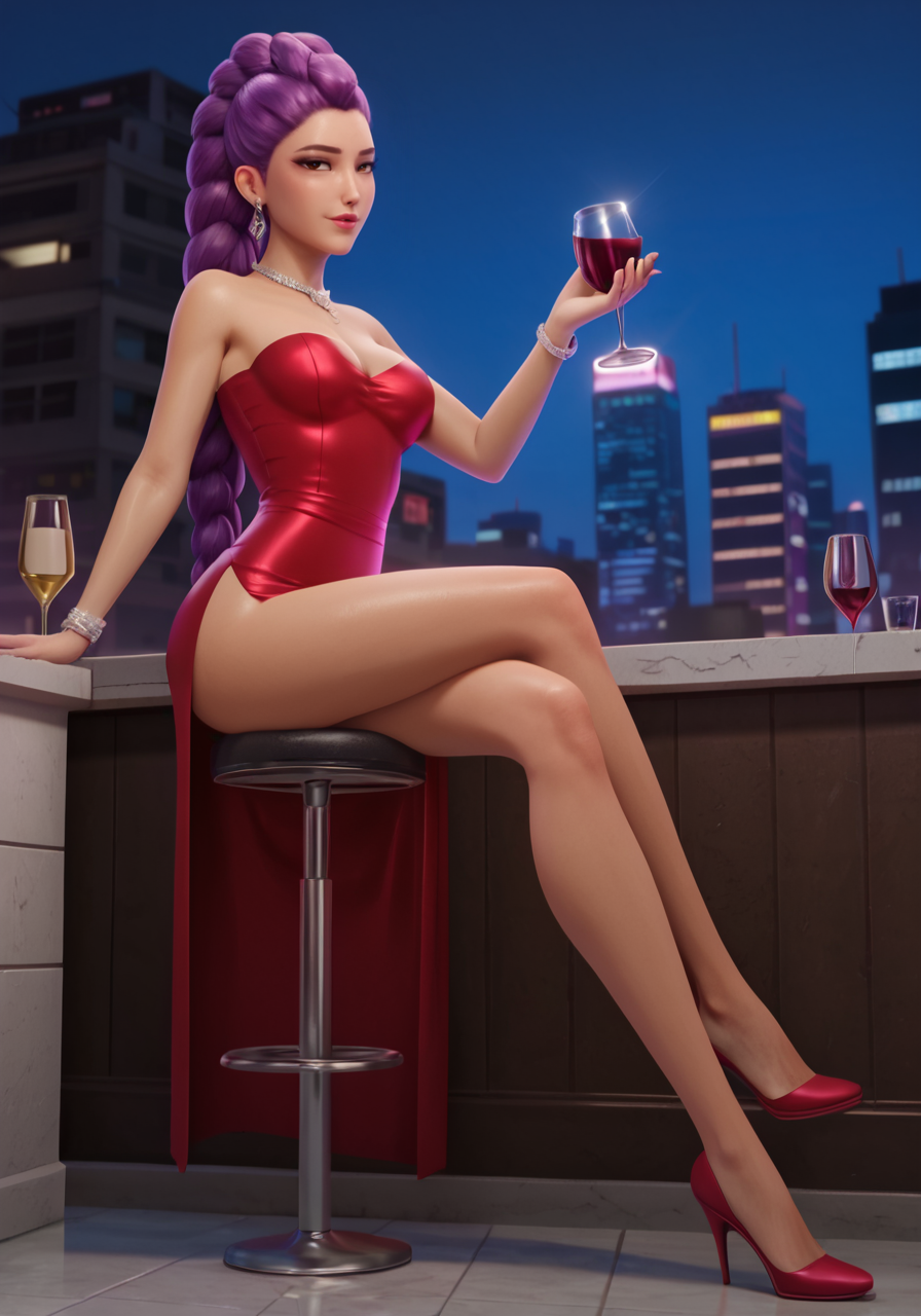kpdh_rum1, 보라색 머리, 긴 머리, 갈색 눈, 땋은 머리, 머리를 뒤로 땋은 스타일,