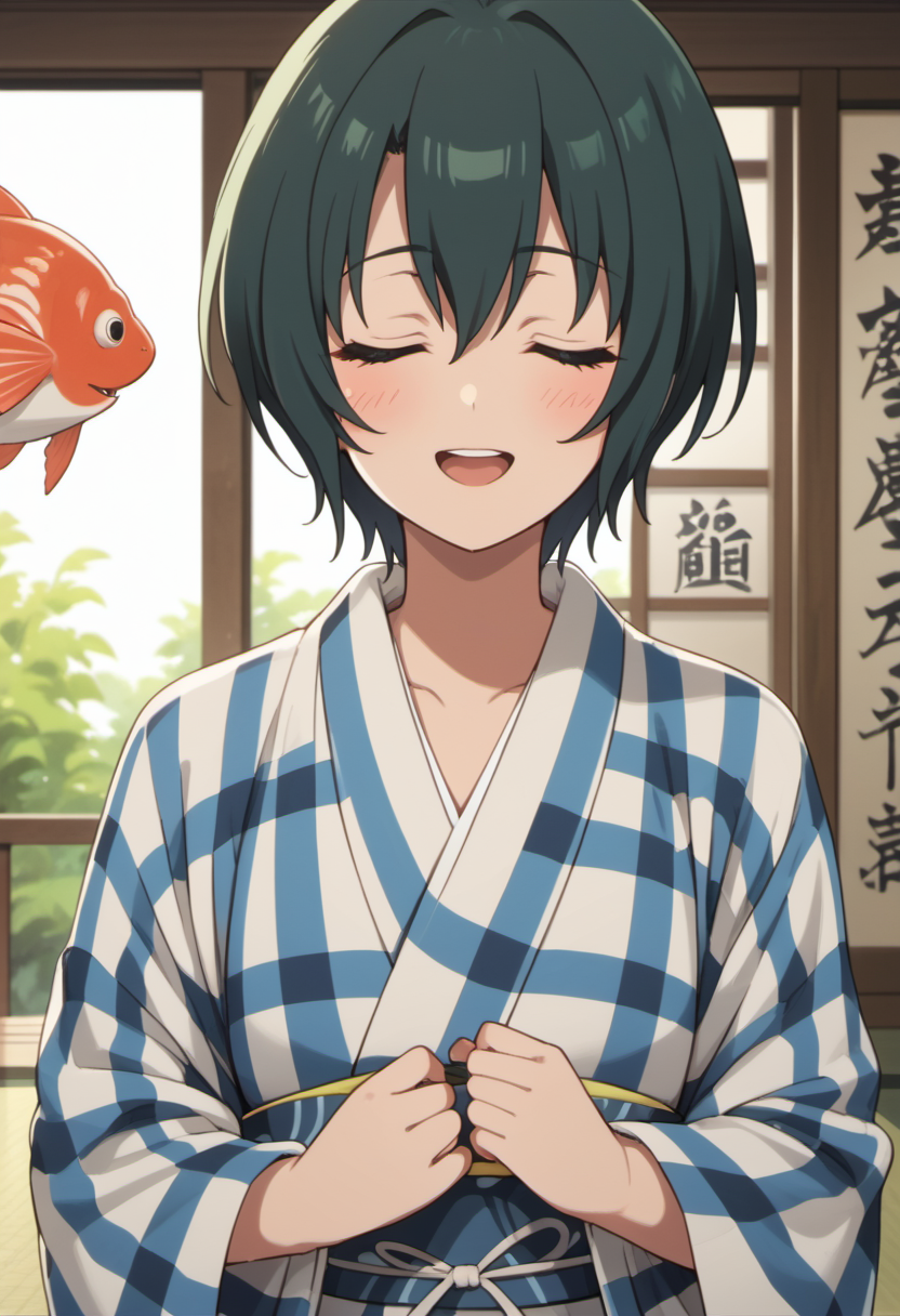 Trigger Words: toudou misa, dark green hair, black eyes, short hair