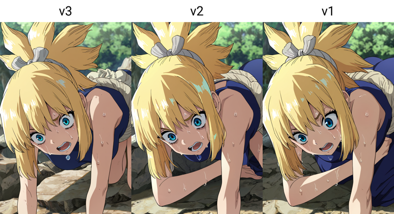이 LoRA는 V1, V2, V3의 세 가지 버전으로 제공됩니다.