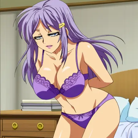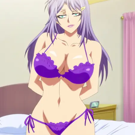 ( lora:mesuonna_jpornography:1> , mesuonna_jpornography, small hair clip, piercing turquoise eyes, clear eyes, bright pupils, beautiful eyes, beautiful lavender hair, beautiful long flowing hair, bang, huge and shaggy breasts, thin waist, wide hips, beautiful skin, natural beauty, extraordinary beautiful woman, attractive woman, super sexy woman, lustful body, sexy woman with seductive obscene body, sensual body, voluptuous body, sexy beauty, ))