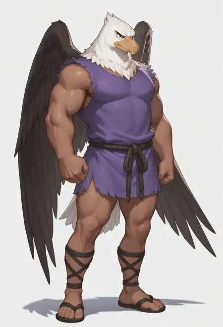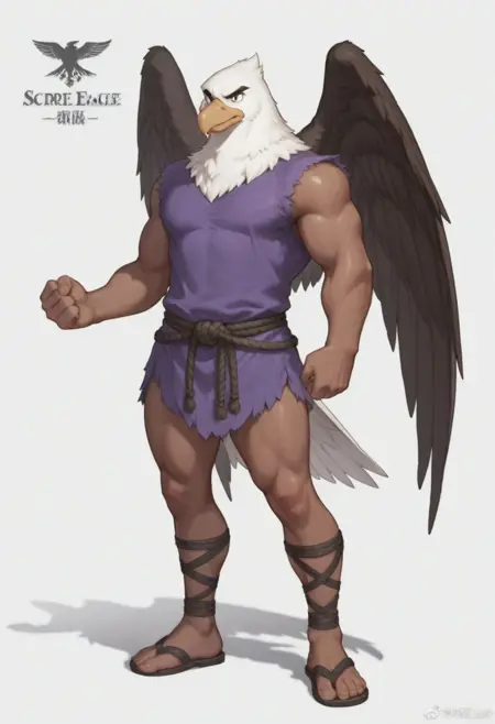 white eagle, beige skin, wings, brown wings, beak,