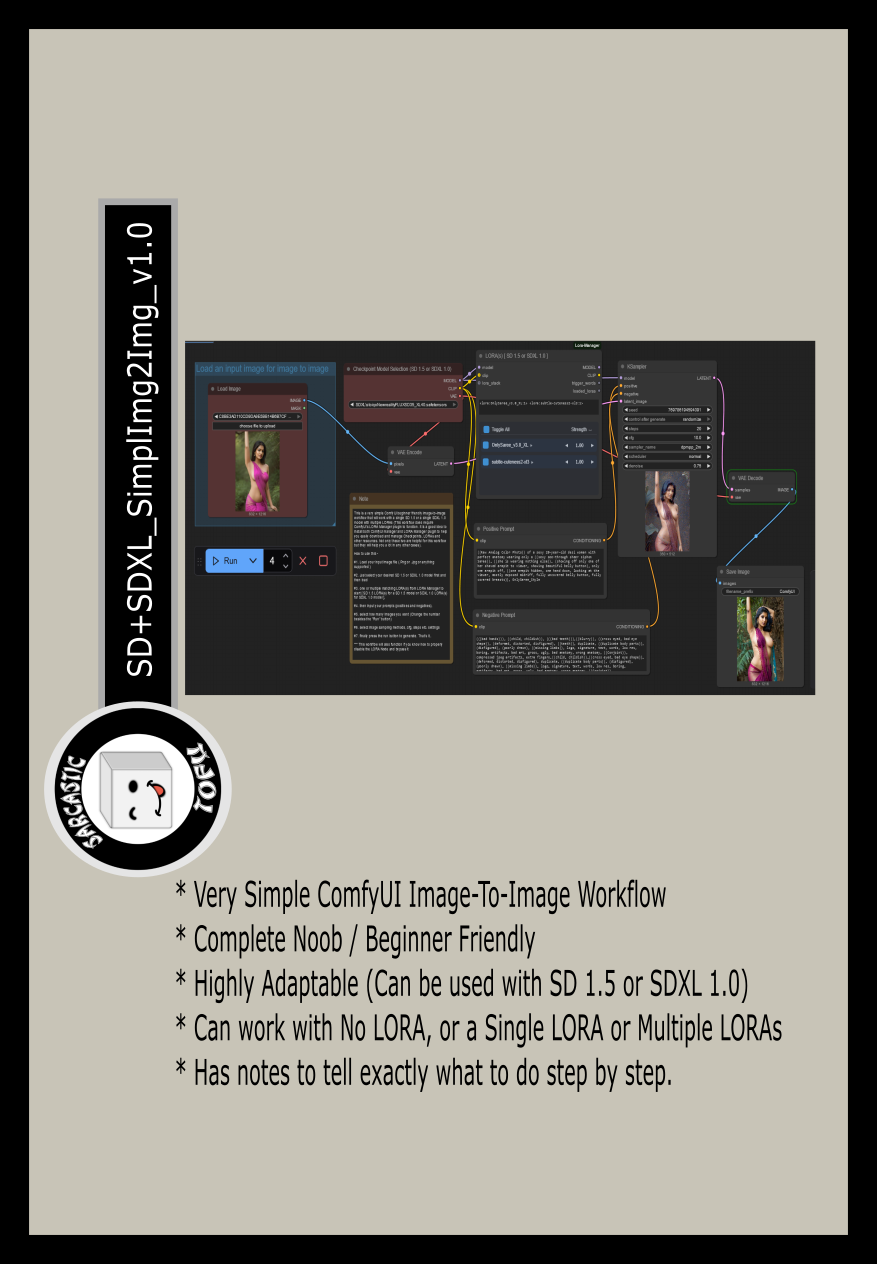 ComfyUI beginner friendly Image-to-Image-SD1.5+SDXL1.0 Workflow (With LORAs) by SarcasticTOFU