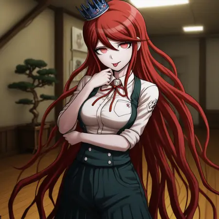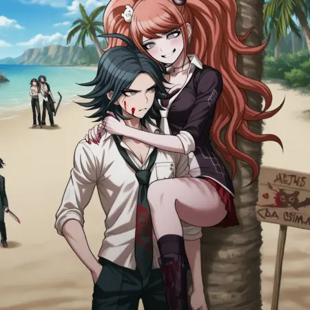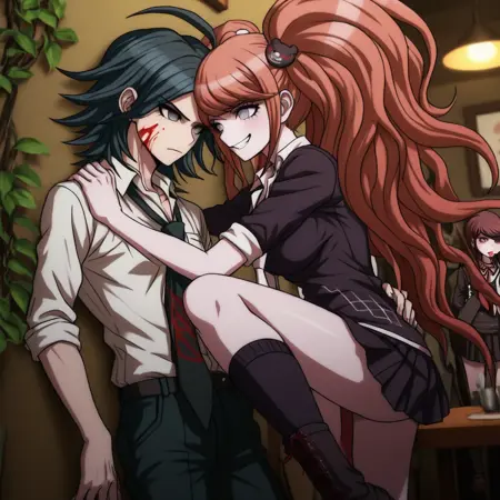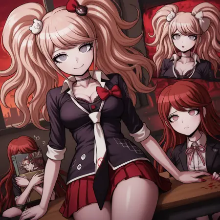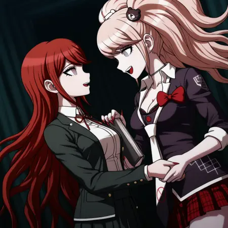 最終的に、このLoRAはそれなりに良くなったと思いますが、学習データの不足によってプロセスが妨げられました。これらの2人について、公式・同人問わず、実際に利用可能な高品質なデータはそれほど多くありません。たとえば、『ダンガンロンパ3』アニメでは、愛子梅澤の方がこの2人よりも多くの登場時間がありました。私は、最高品質の非公式アートとすべての公式アート、それに私が開発した他のダンガンロンパLoRAから選んだ要素を組み合わせて、両キャラクターとアニメスタイルの学習データを構築しました。その目的は、他のダンガンロンパコンテンツからの影響をある程度取り入れることで、『ダンガンロンパゼロ』の独特なスタイルと通常のダンガンロンパスタイルの差を埋め、より近づけるためです。そのため、このLoRAのデータセットには江ノ島盾子の画像が多めに含まれています。アニメやスプライトスタイルのベースとして、盾子の存在は信頼できる選択肢だと考えたからです。