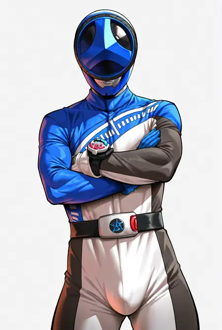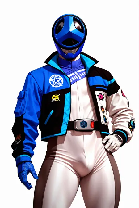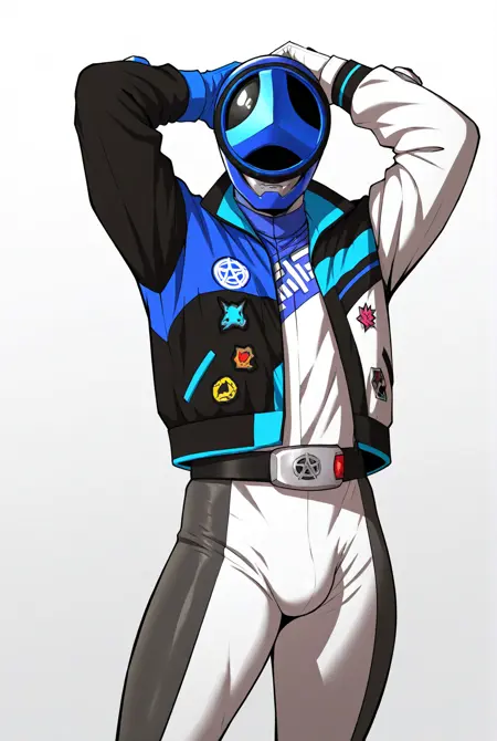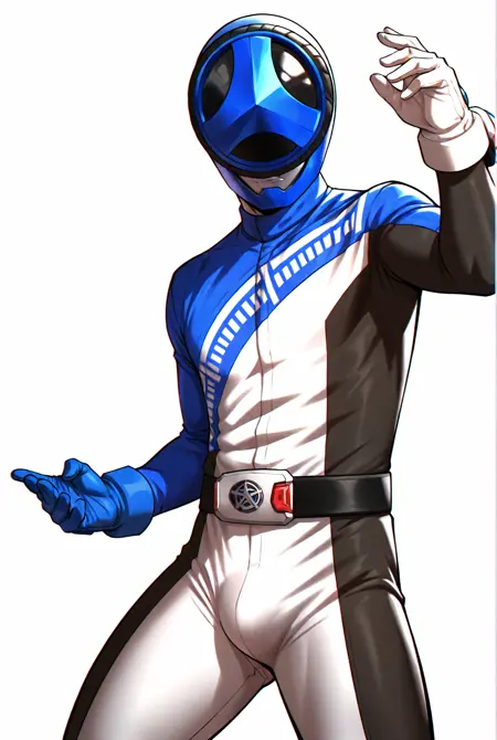 기본 복장: 번 블루, 파란 바디수트, 파란 장갑, 흰 장갑