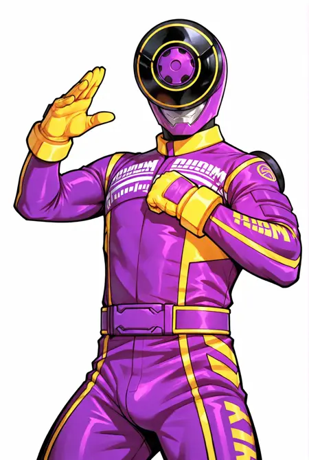 Basic Outfit: bun violet, purple bodysuit, yellow gloves,