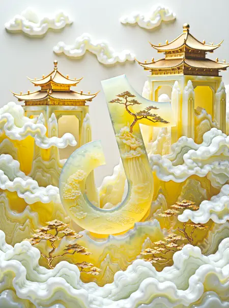 Font/logo creation: Jade three-dimensional characters, logo gold and jade inlay effects.