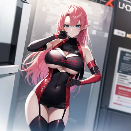 竞速女王 - 竞速女王,耳环,短款连衣裙,无袖连衣裙,紧身连体衣,露乳剪裁,衣物剪裁,吊袜带,臂套,双色手套,黑色过膝袜,珠宝首饰,贴身剪裁,皮肤纹理