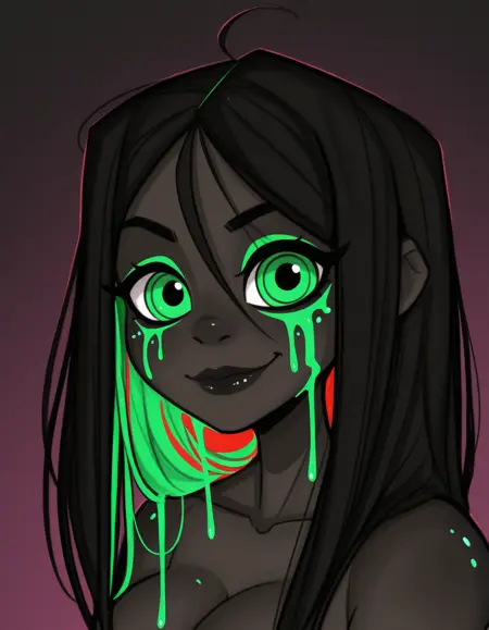 セミリアリスティックで高品位なポートレートスタイル。柔らかい絵画的なシェーディングと、表情豊かな大きな目が特徴。力強い照明、洗練されたディテール、そして生命感を生み出すほど十分なリアリズム。