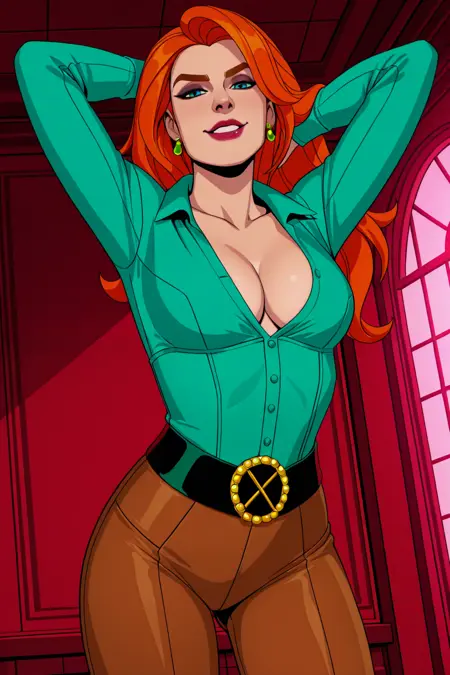 Madelyne Pryor:madelyne pryor,长发,橙发,蓝眼睛,*飘逸长发,口红
