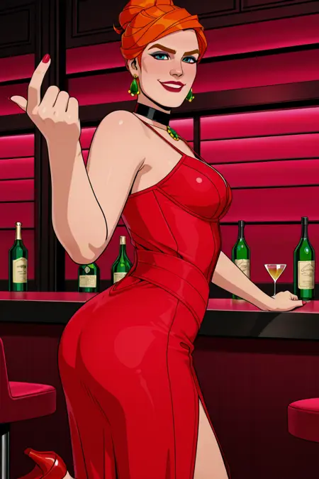 Madelyne约会装:发髻,盘发,耳环,项圈,Genosha礼服,红色礼服,红色高跟鞋