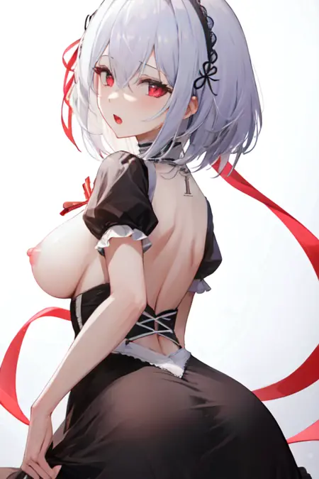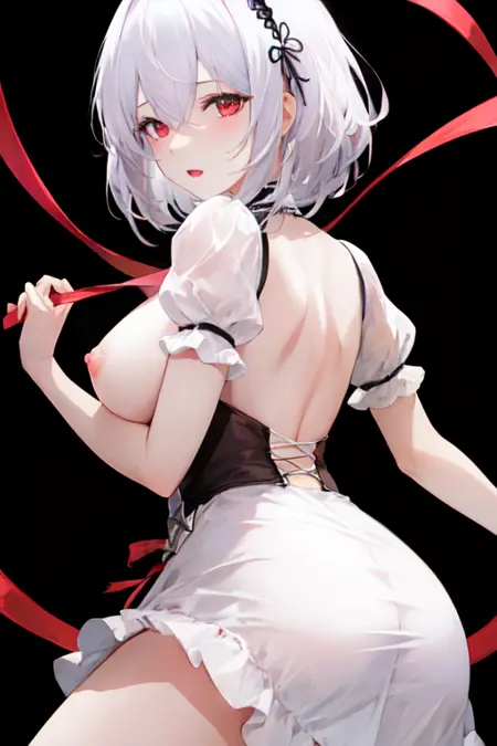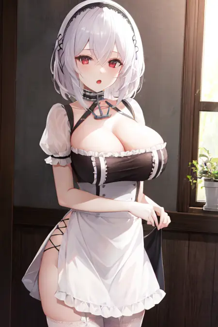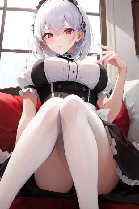 Additional Prompts- short hair, white hair, maid outfit, red eyes
