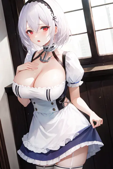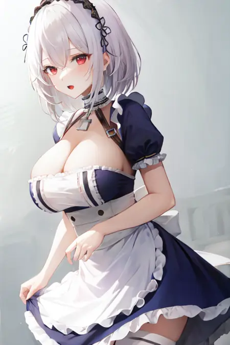 附加提示词 - 短发,白发,女仆装,红眼睛
