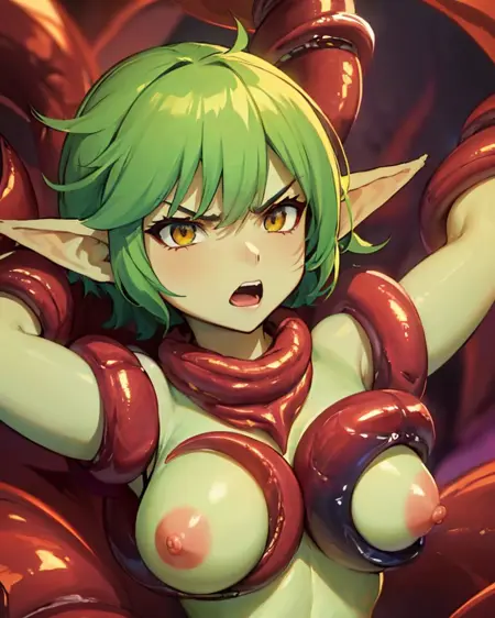 태그: tentacle_breastgrab, 촉수, 잡는 동작, 팔을 위로, <색상> 촉수
