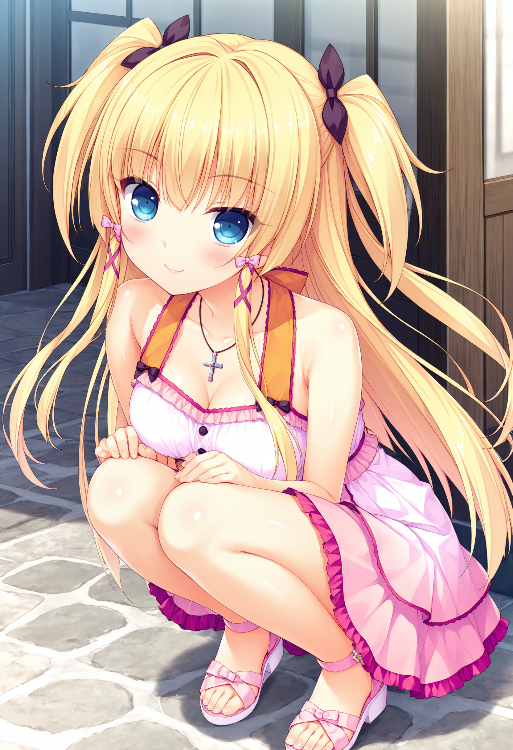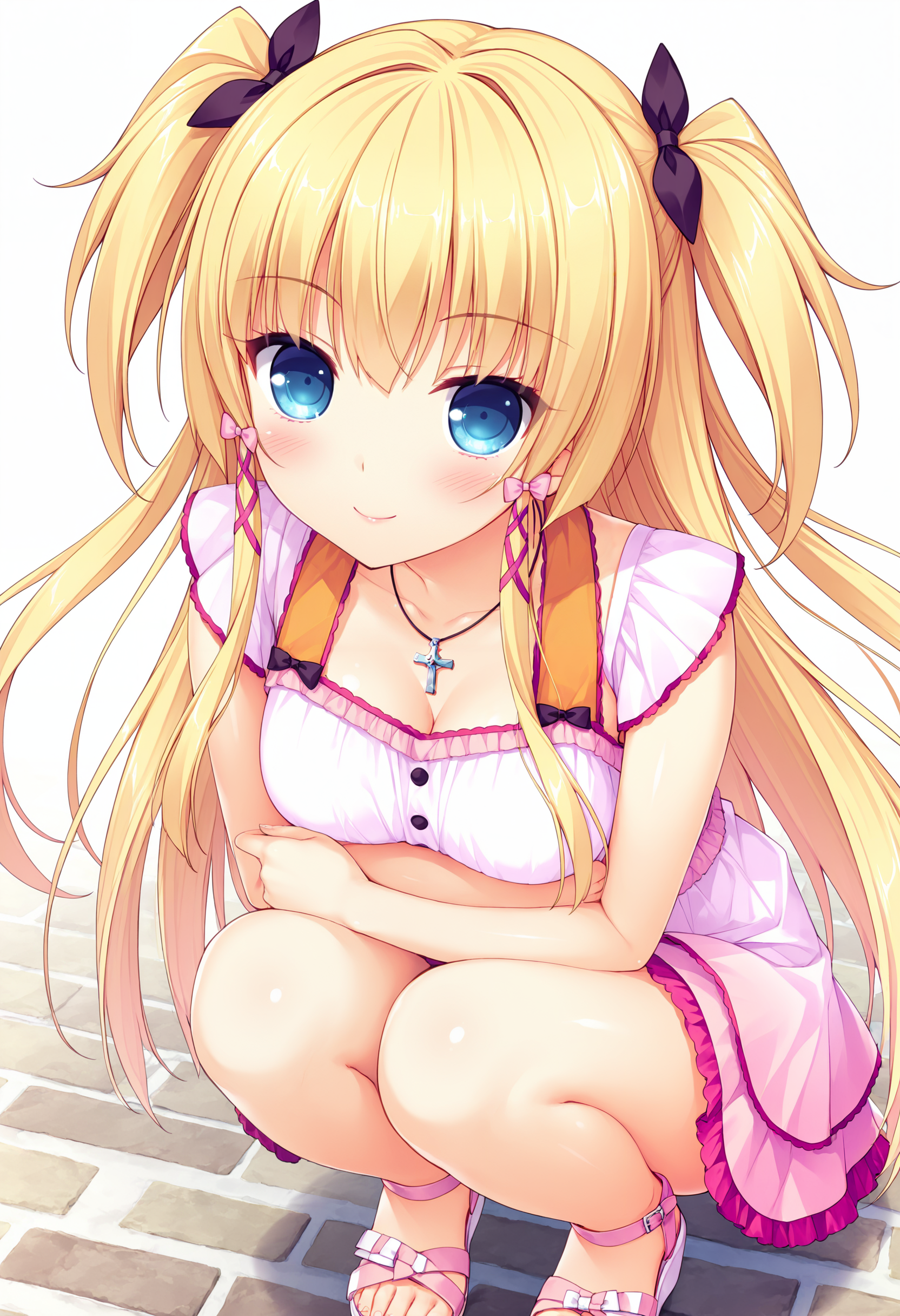 CHANGFU,hair bow,bow,cross necklace,orange ribbon,pink dress,