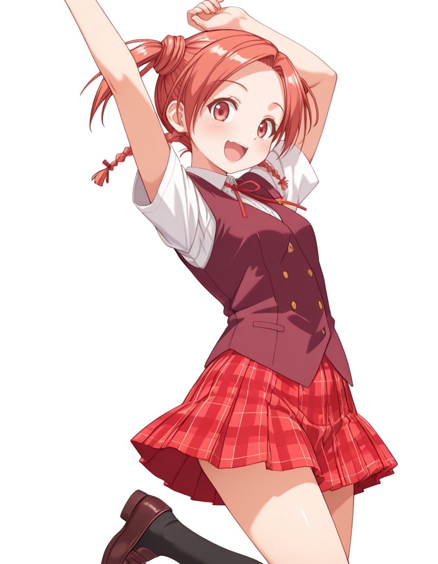 トリガーは「shiina sakurako」だけでも出ますが、念のため「brownishi-red hair, garnet eyes」も入れておいてください。
