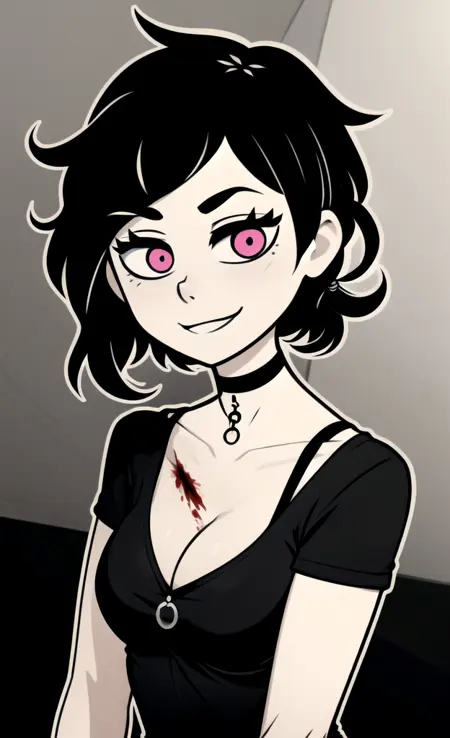 LORA 在15幅精心挑选的描绘《Andy与LeyLey的棺材》游戏中Ashley Graves的艺术作品上训练。