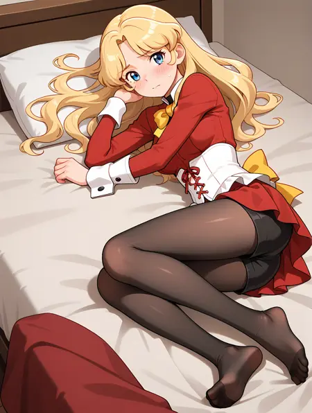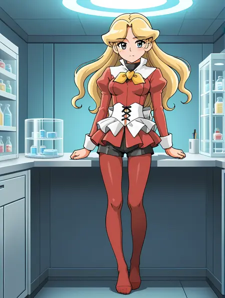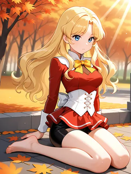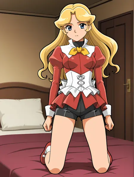 red dress white corset yellow bow red mini skirt black shorts red shoes