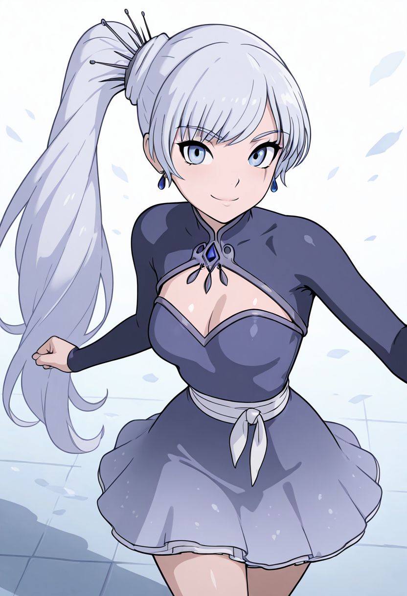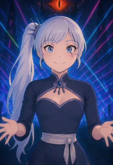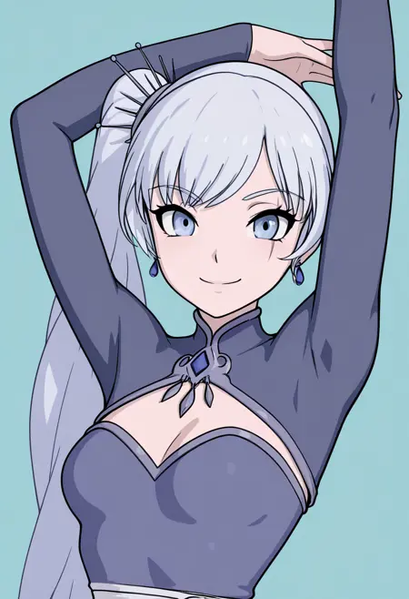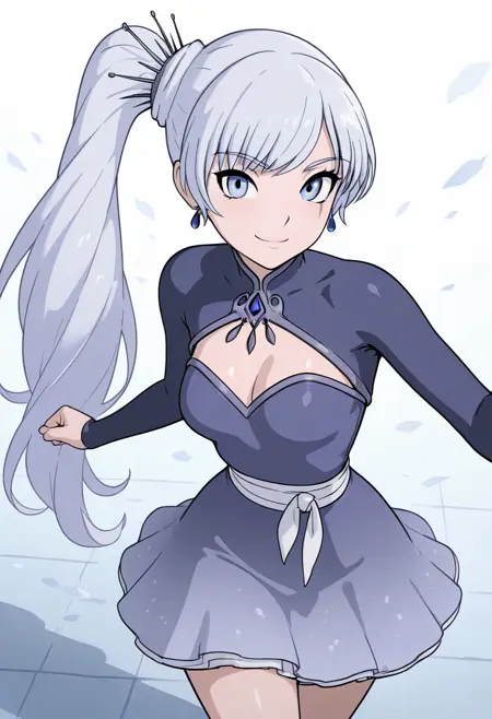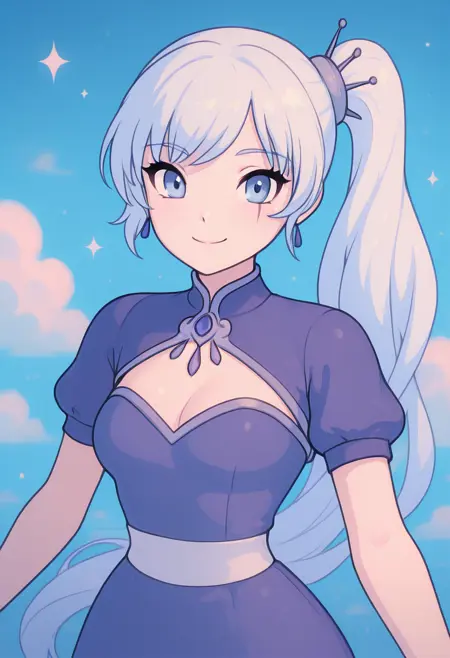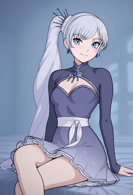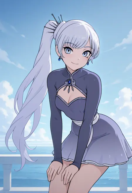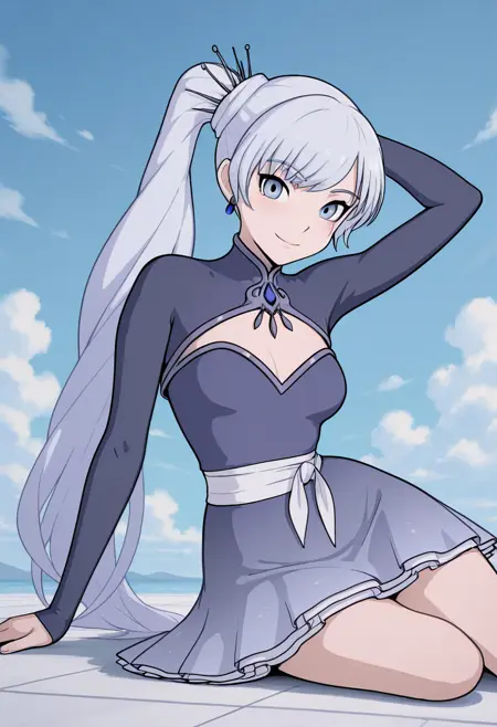 zzWeiss、青い目、目元の傷、髪飾り、長い髪、ポニーテール、片側ポニーテール、白い髪、