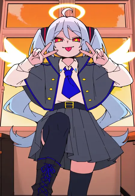 dk_miku, 双马尾, 长发, 浅蓝色头发, 红色眼睛, 花形瞳孔, 头饰, 天线发, 光环, 天使翅膀, 分离式翅膀, 迷你翅膀, 多色眼睛,