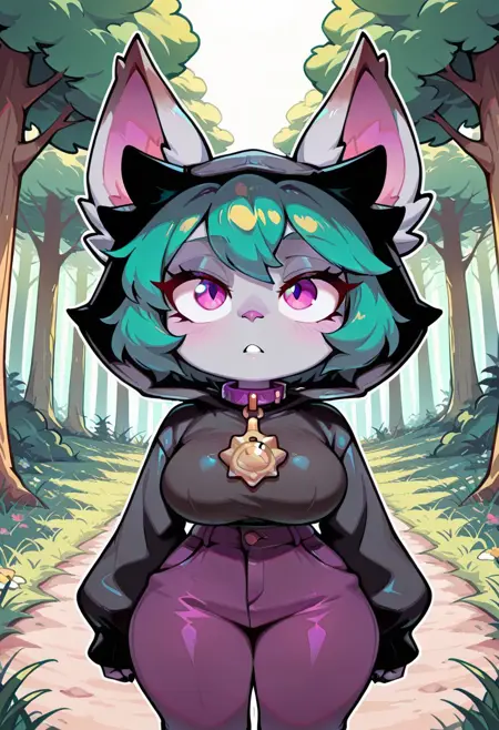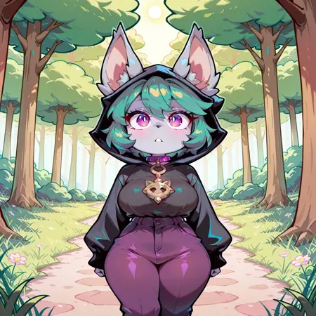 | 학습된 단어 | black hood, hood up,ears through headwear,black shirt, purple collar, golden ornament, long sleeves, sleeves past wrists, purple pants, sandals복사됨! yordle, shortstack, pink eyes, green hair, bangs, short hair, grey skin, colored skin, e white animal ears, black shirt,복사됨! |