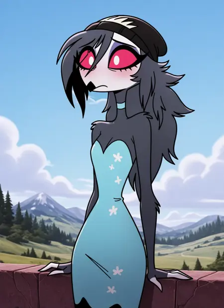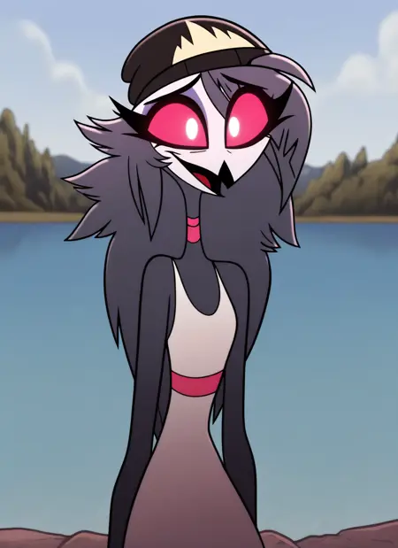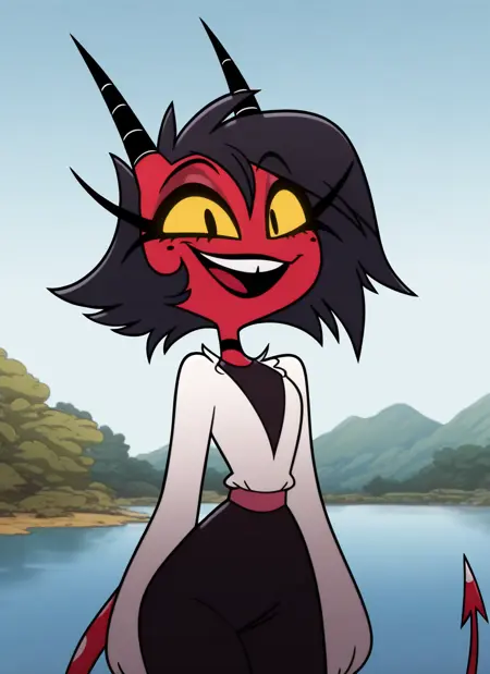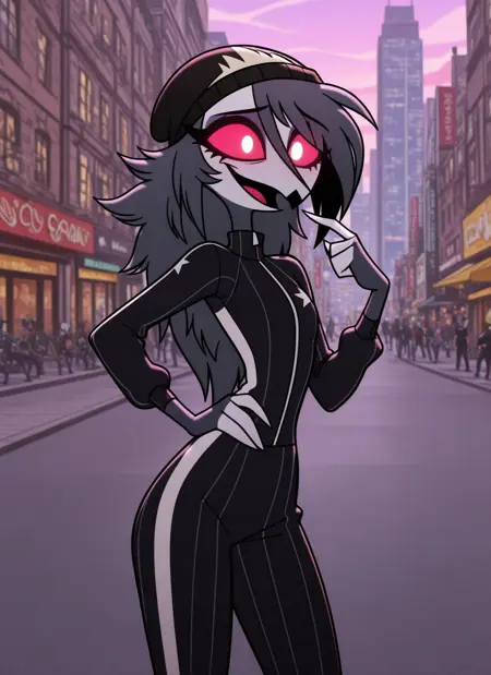 베로시카: vrsk, 사타니, 노란 공막, 분홍 눈, 분홍 피부, 흰 머리카락, 긴 머리, 뿔, 심장 꼬리