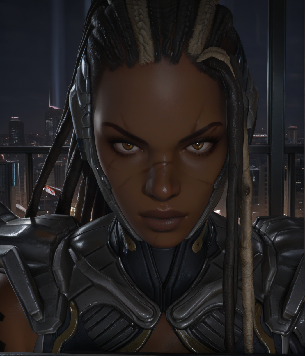 mstrrvnxl,棕色眼睛,黑色头发,双色头发,马尾辫,脏辫,面部疤痕,