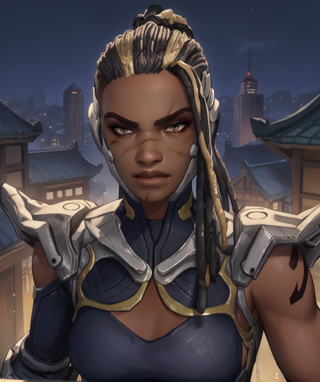 mstrrvnxl,棕色眼睛,黑色头发,双色头发,马尾辫,脏辫,面部疤痕,