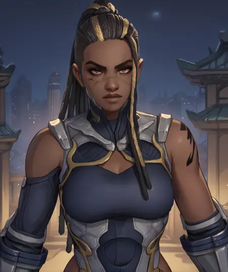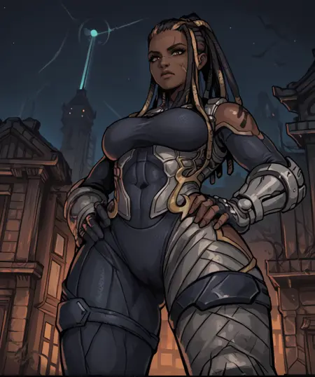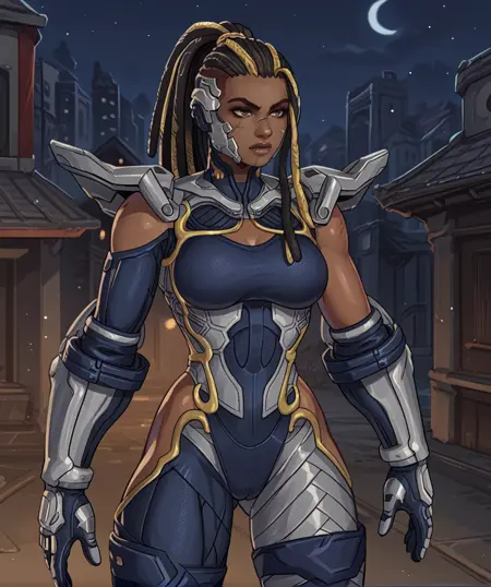 可添加“深色皮肤”或“深色皮肤女性”——若某些风格会提亮肤色