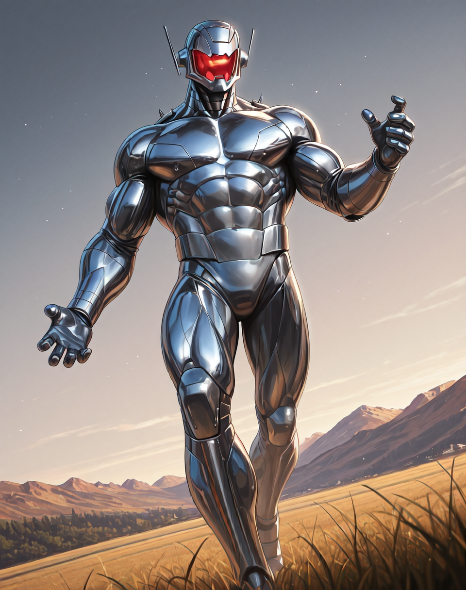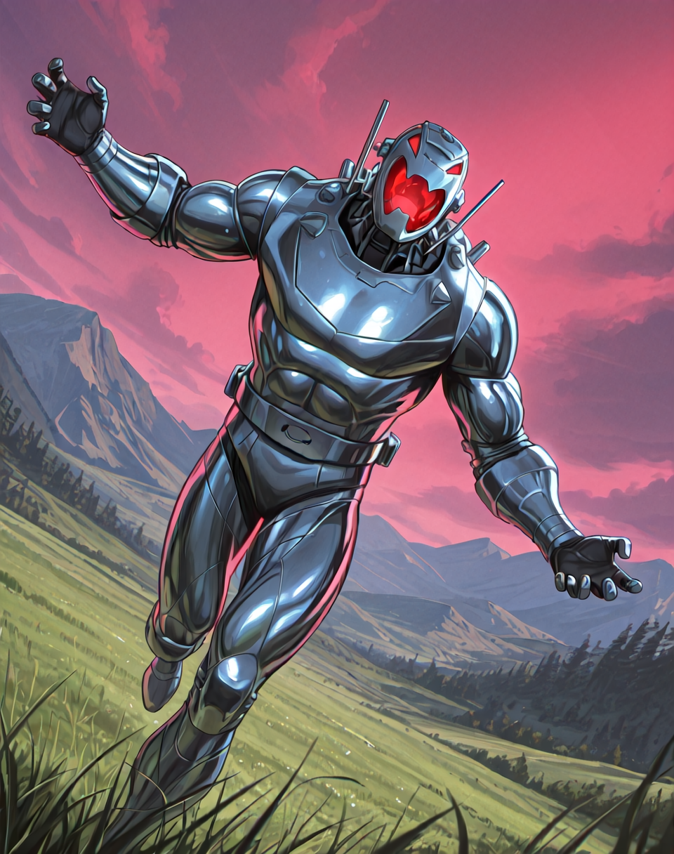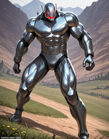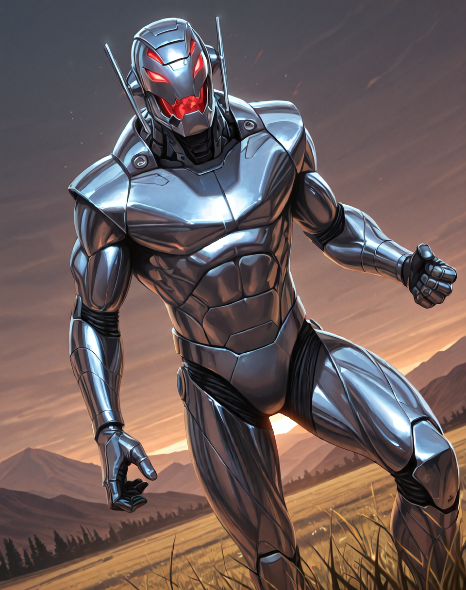 适用于此LoRA的提示词为(Ultron Unlimited,肌肉发达,机器人)。