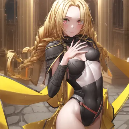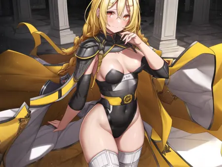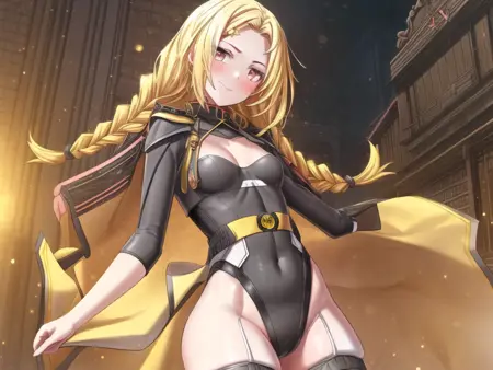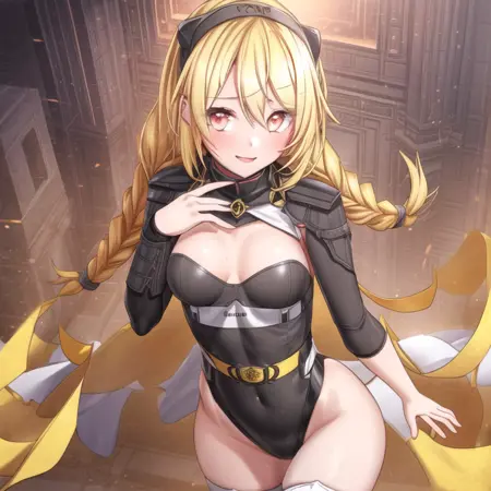 Sakenobe,blonde hair, black dress, leotard, standing, armor,