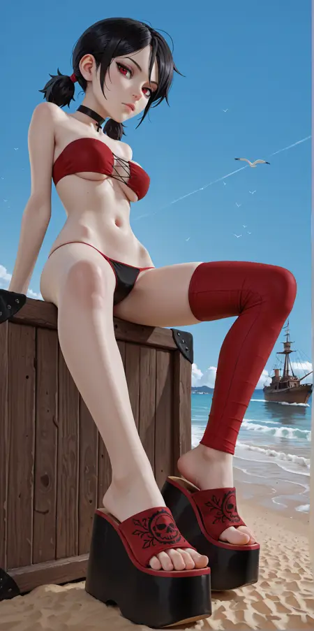 Big fuckin sandals with woven straw insole and red patterned slide strap.