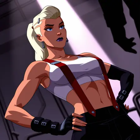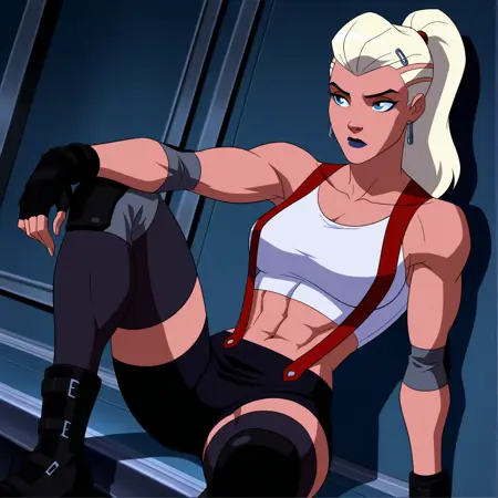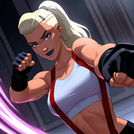 オプションタグ: レトロなアートスタイル、筋肉質な女性