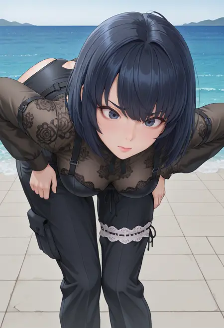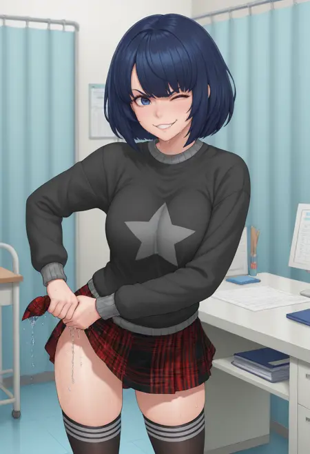 次のトリガー単語を必ず使用してください:mnmlssb, blue hair