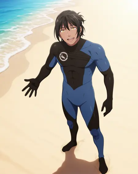 wetsuit, two-tone wetsuit, mismatched legwear, mismatched shoulder