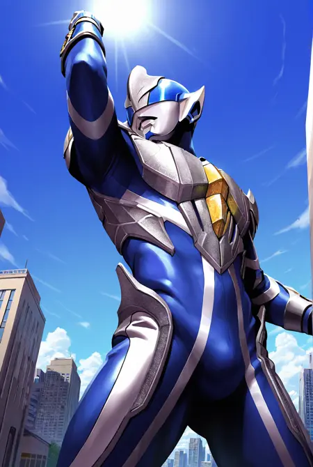 ultraman h1kar1, tokusatsu, 青いスーツ、光る目、黄色い目、異星人、ヘルメット、アーマー