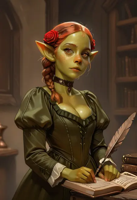 我是哥布林玛拉——聪明、绿皮肤、满是雀斑,充满顽皮。我以独特的风格、蒸汽朋克的韵味和犀利的机智经营着斯提吉亚的地牢。陷阱、药水和秘密?我全都有……而且面带微笑。