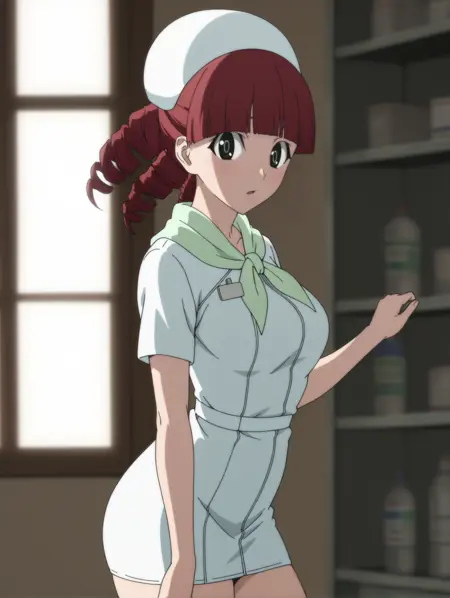 nurse,nurse cap,green neckerchief,dress,white dress,short dress,short sleeves