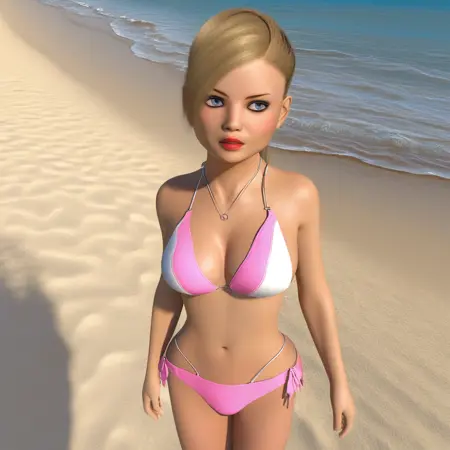 금발 머리, 파란 눈의 소녀, 풍만한 가슴, 큰 눈, 모델은 게임 파일로 학습됨